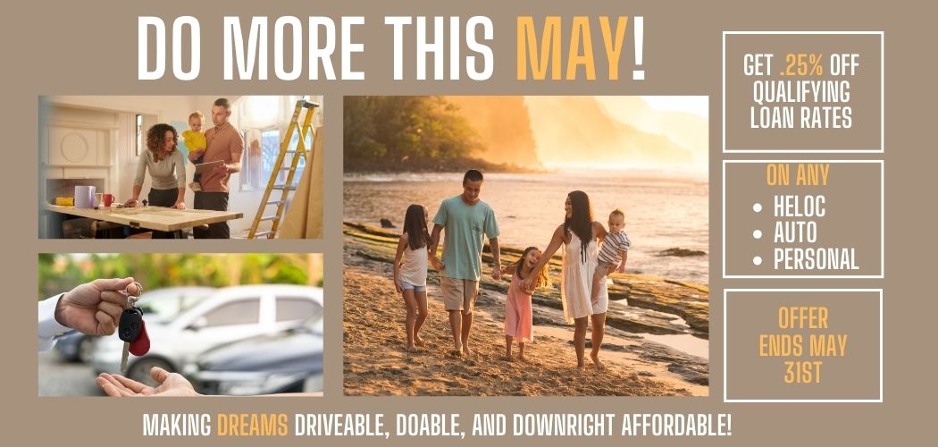 That’s .25% off qualifying rates on auto loans, personal loans, and HELOCs—ALL MONTH LONG.